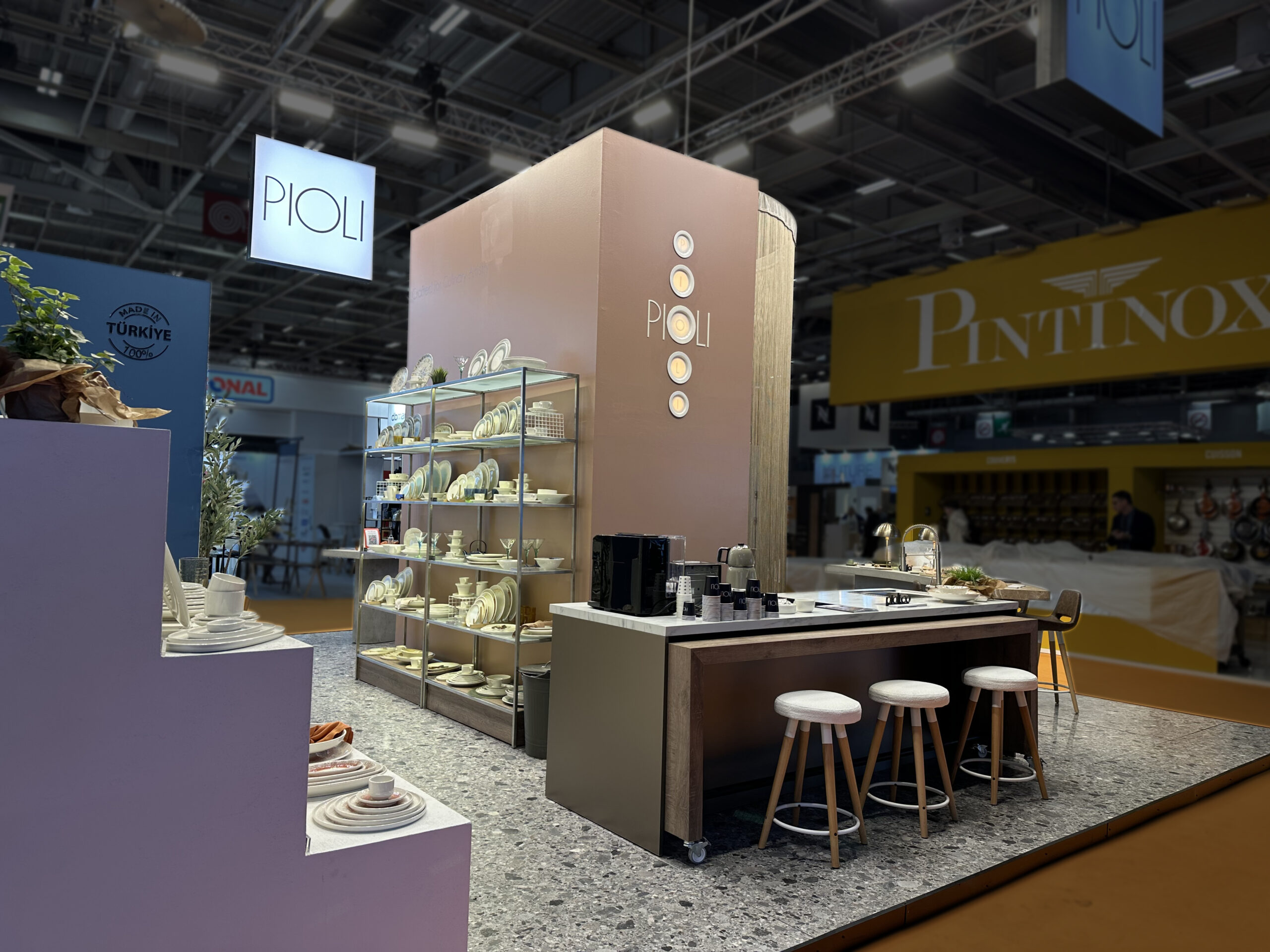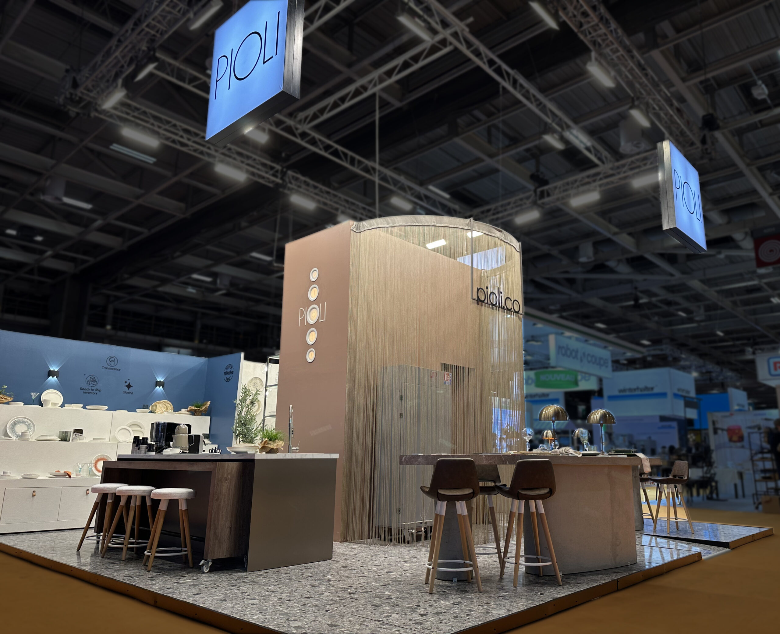 Porland, Pioli's stand at EquipHotel Paris 2024, Europe's most comprehensive hotel equipment exhibition, stood out with its aesthetic design and functional layout. The brand's extensive product collection was showcased in a highly functional setup.